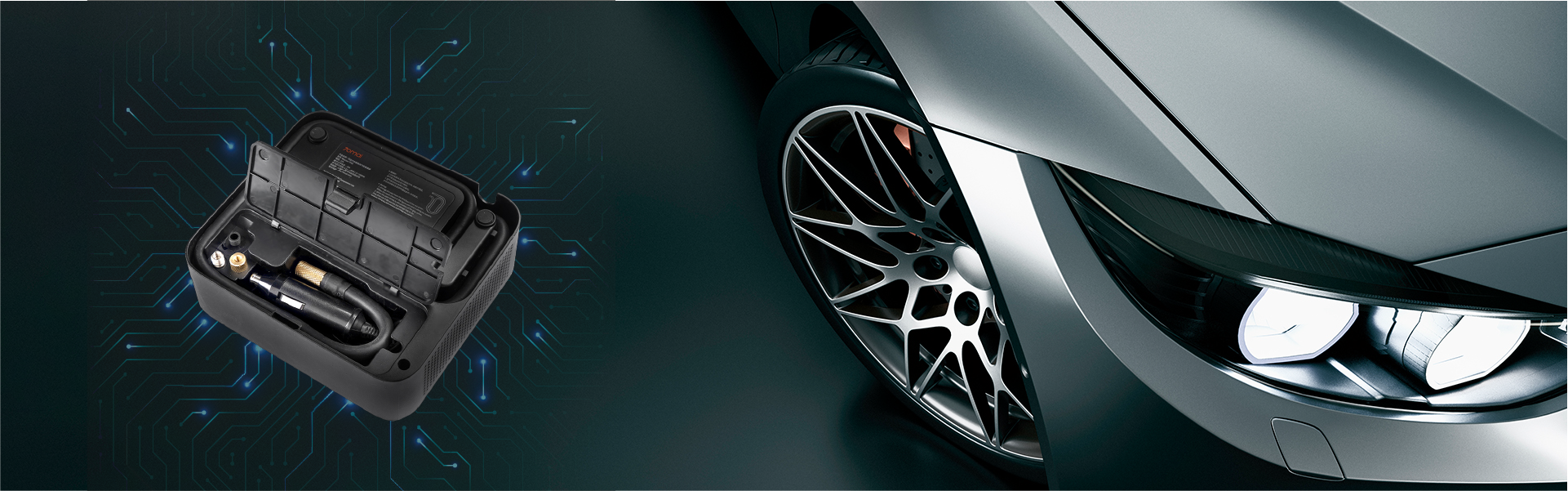 Electric, portable air compressor that can inflate any tire in less than 5 minutes.